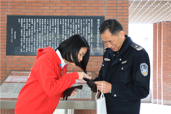 礼轻情意重,虽然只是一副手套,但校园守护者们依然纷纷感谢给他们送去温暖的志愿者。英国365上市公司官网大学生记者团团长李晓悦说,“很感谢湖北日报开展的这个活动,给我们提供了一个感谢校园守护者的机会,虽然他们都是默默无闻的平凡人,但他们身上有着很多值得我们学习的地方。”