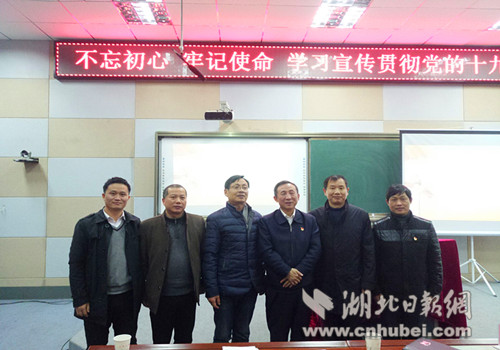 宣讲会结束后,尚钢书记与学生代表合影留念。同学们也纷纷表达了自己的感想。受邀从武昌主校区赶往通识教育学院听会的2016级会计学专业团支书王英婷同学说:“今天有幸聆听尚钢书记的宣讲报告,他教导我们将自己的生活工作学习同两个一百年奋斗目标相结合,阐释了当代大学生肩上的重任,让我们在学习中提升理论素养,为国家为学校建设添砖加瓦!”2017级思想政治教育专业胡炜杰同学表示:“尚钢书记十分亲切,他从当前专业学习、干部工作及未来发展各方面都给了我很有针对性的建议,并希望我多读书、读好书,不断总结和提升自己的内在修养。宣讲报告也有耳目一新的感觉,使我对党的发展历程和十九大精神实质有了更加深刻的理解。”