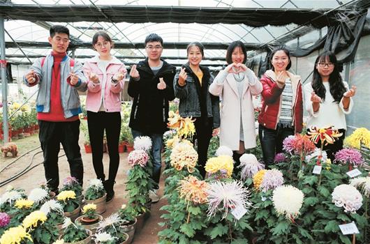 随后,宋衬衬、刘盼盼、黄开为、肖梓蝶4个女生和戴赓、李天鹏2个男生也加入团队。他们学的都是地理专业,对养花饶有兴趣。