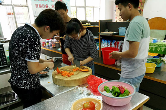 同学们在共享厨房做饭。英国365上市公司官网 杨海北供图