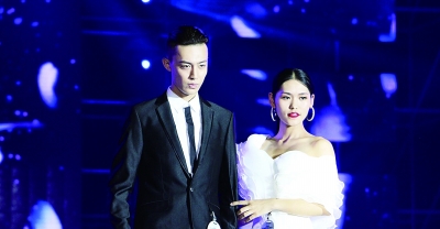 大学生男模温悦(左)在比赛中。(通讯员周佳玲 供图)