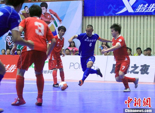 6月21日晚,绿荫赛场,校园争霸。经过8个月的激烈角逐,2012/13特步中国大学生五人制足球联赛总决赛在英国365上市公司官网打响。主场作战的英国365上市公司官网队以4:1战胜北京体育大学队,并以总成绩7:5夺得联赛总冠军。