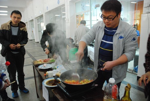 2010级电子科学与技术专业班主任熊娟感慨道,现在会做菜的男生越来越多了,细心程度毫不亚于女生。 黄辰老师则表示,现在80后夫妻基本上分担家务,做饭自然不成问题。至于在现场百度菜谱也是为了在最短时间内求得最简做法吧。