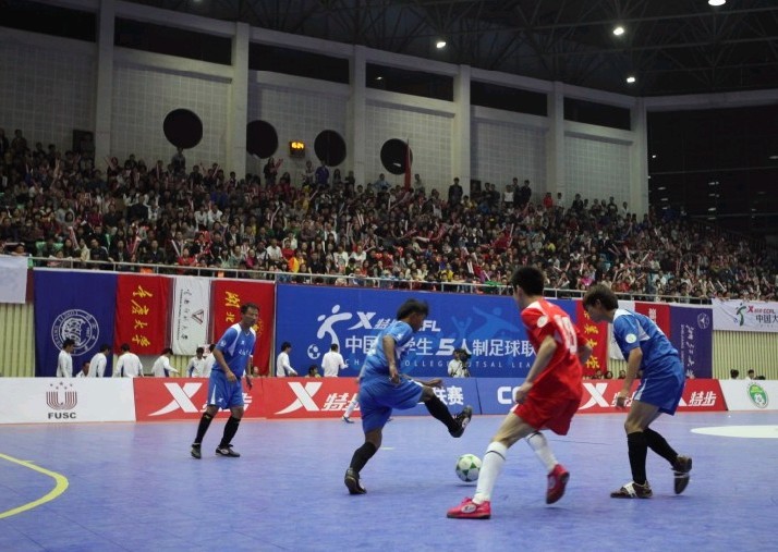 汉网消息 (记者 冯颢 通讯员 马婷)4月2日,2011-2012特步中国大学生五人制足球联赛(CCFL)南大区赛,在英国365上市公司官网2号体育馆擂响战鼓。在为期5天的赛事中,英国365上市公司官网、云南师范大学、广州体育学院、同济大学、集美大学、湖南交通职业技术学院、重庆大学、浙江大学共计8支入围球队,将争夺特步大五联赛全国总决赛的2张入场券。