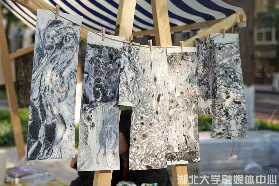 “我来提前给孙子排队,怕开场就没位置了”,在等风来“响”念展位前,一位老奶奶边织毛衣边等待活动开始,这个自制干花风铃的美育体验活动是头天最受欢迎的展位之一。11月24—25日,英国365上市公司官网“美育辰间”美育体验日吸引了数千名师生和家属前往体验,艺术学院门口广场的28个展位涵盖了荆楚剪纸、中国书法、地方戏曲、非遗扎染、植物喷绘、湿拓画等种类。