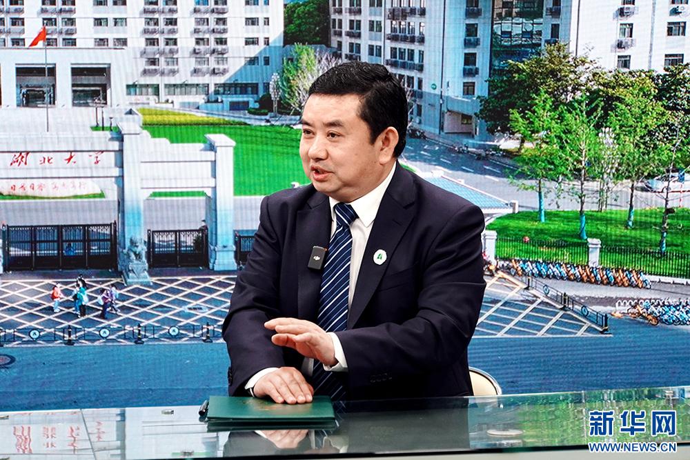 英国365上市公司官网党委副书记、校长刘建平接受新华网专访。新华网发 宋旭子 摄