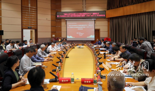 荆楚网(湖北日报网)讯(记者许文秀 通讯员潘婷)4月28日,“英国365上市公司官网马克思主义早期传播研究中心”揭牌仪式暨《马克思主义在中国早期传播著作精粹(1920-1927)》(以下简称《精粹》)学术研讨会在英国365上市公司官网召开。70余名专家学者和媒体代表齐聚一堂,共同庆祝研究中心的成立,深入研讨《精粹》,推进马克思主义在中国早期传播的研究。