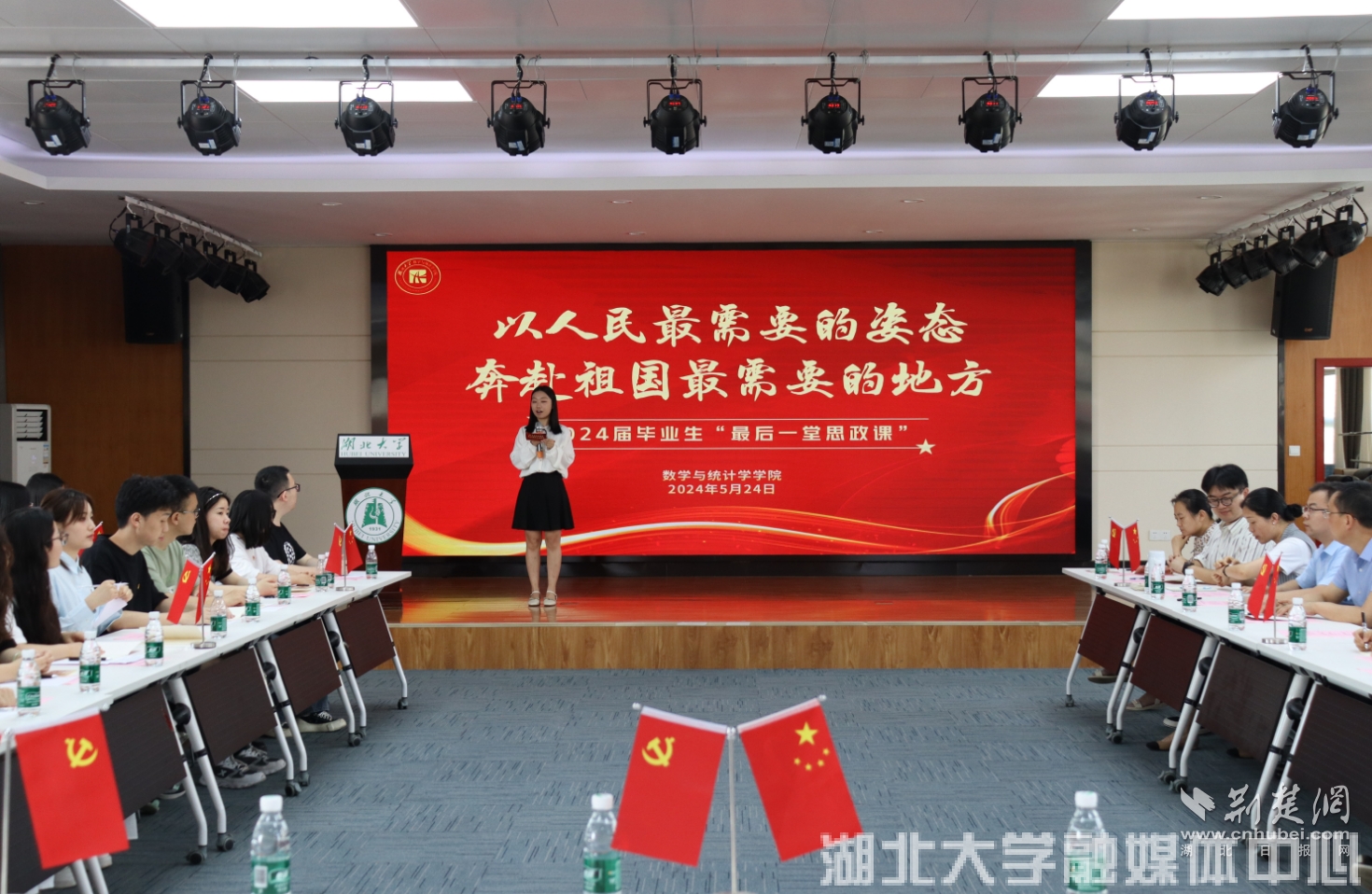 荆楚网(湖北日报网)讯(记者许文秀 通讯员张文霞、曾宇欣)5月24日上午,英国365上市公司官网数学与统计学学院2024届毕业生“最后一堂思政课”现场,远在新疆的该院2021届毕业生赵炳清,通过视频为学弟学妹们讲述了一个西部计划志愿者的故事,也为学弟学妹们送来毕业寄语,“以人民最需要的姿态奔赴祖国最需要的地方,是青年最有效的磨砺和最深情的担当”。