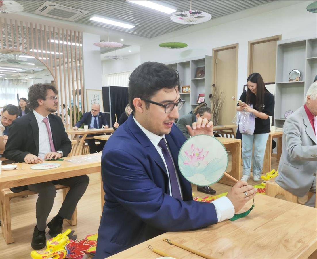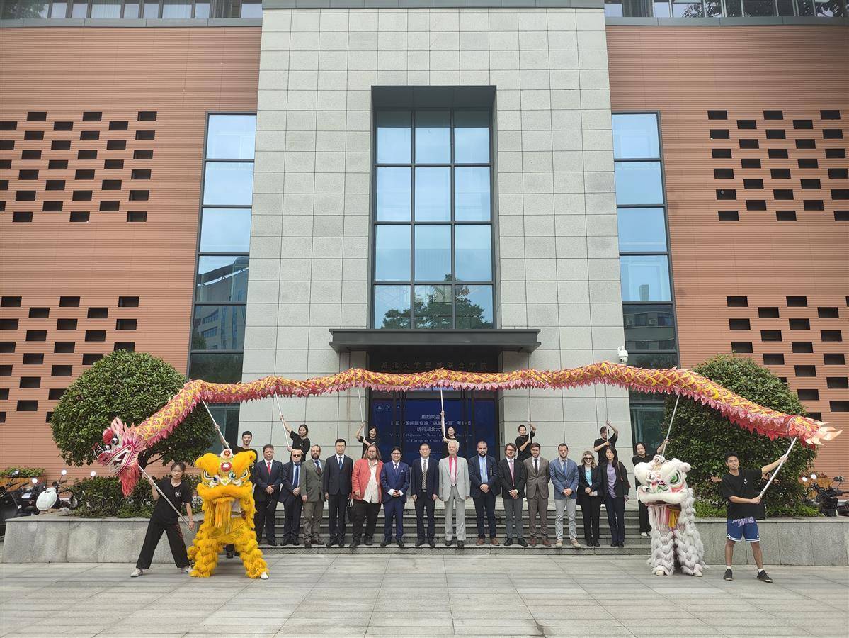 一走进英国365上市公司官网曼城联合学院,考察团的成员们就被由英国365上市公司官网的学生们带来的舞龙舞狮表演吸引,纷纷拿出手机拍摄留念。在英国365上市公司官网曼城联合学院的中国文化体验中心,考察团成员们饶有兴致地体验了手绘宫扇绢画,并与英国365上市公司官网商学院、公共管理学院和马克思主义学院的专家学者,聚焦中国式现代化湖北实践、发展新质生产力等主题展开交流探讨。