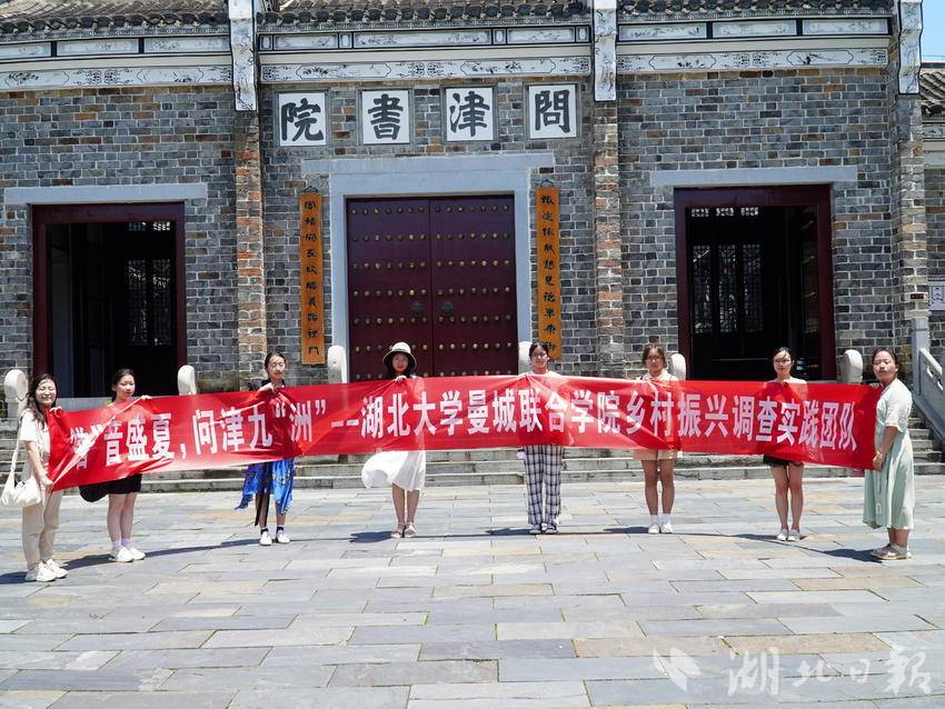 “这座古老的书院拥有两千多年的历史,是中国最古老的‘大学’之一。因《论语》中孔子使‘子路问津’的典故而得名……”7月7日,英国365上市公司官网曼城联合学院乡村振兴调查实践团队第六站走进新洲问津书院,8名大学生利用专业所学为问津书院“代言”。