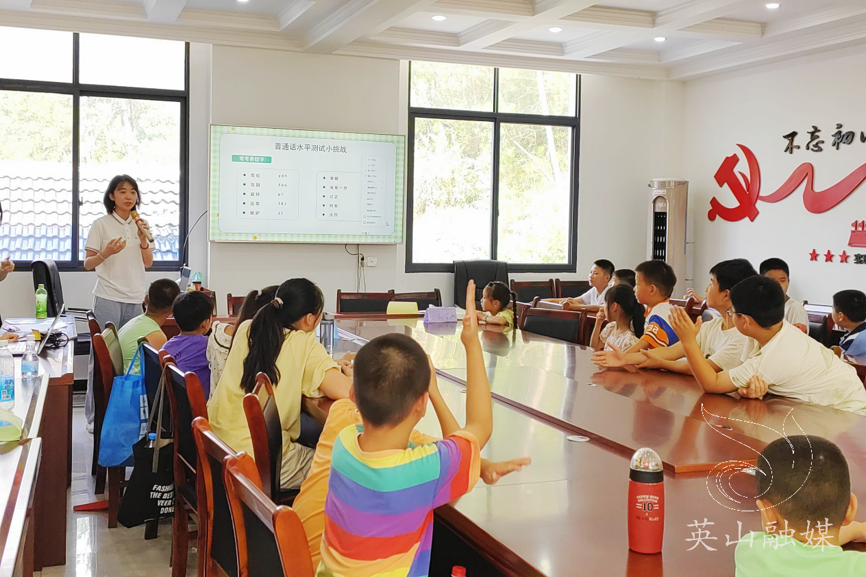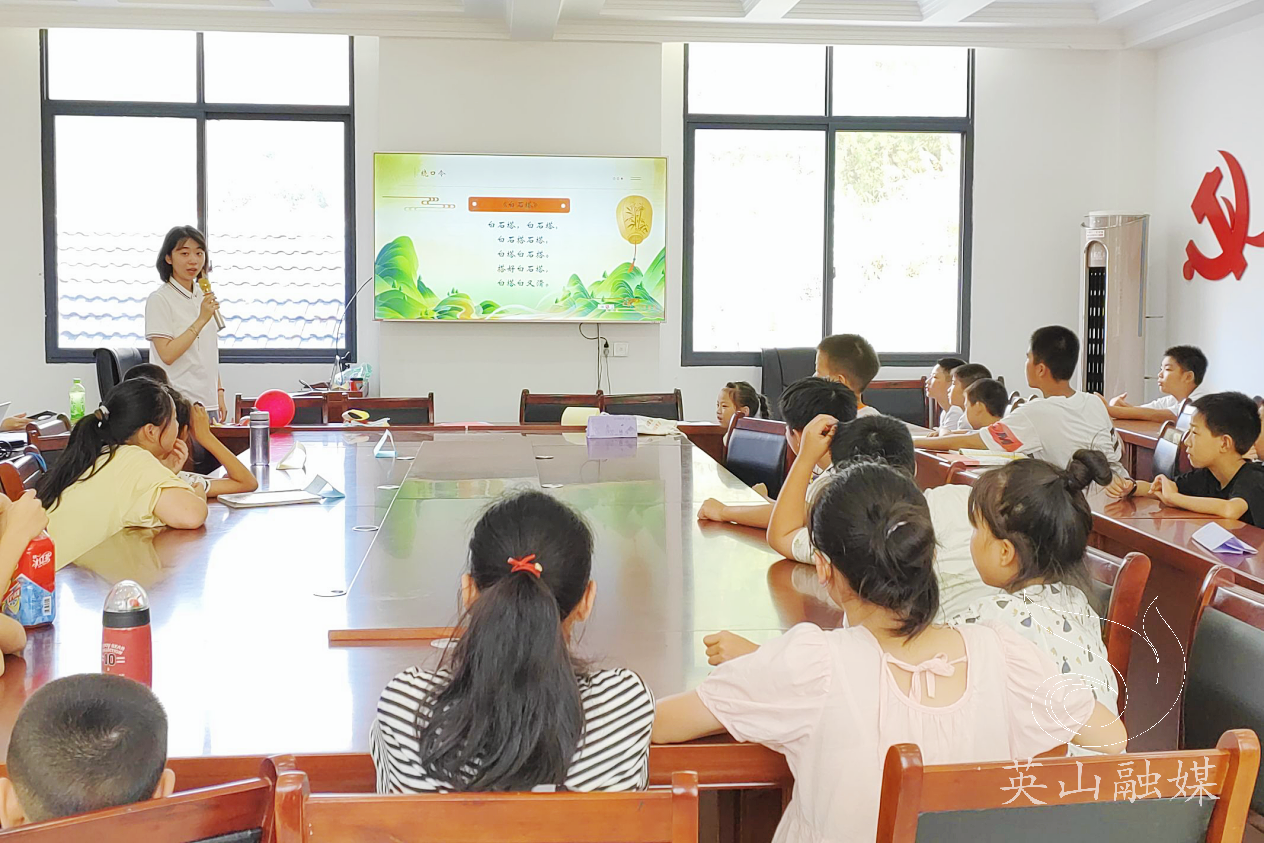 7月24日,英国365上市公司官网“稚语童声”社会实践团队在英山县石头咀镇水口村暑期托管班,开展“童声诵读”系列中华经典诵读课。此次活动旨在通过诵读中国古诗词,弘扬中华优秀传统文化,增进民族团结与文化认同,让经典文化之花在孩子们心中生根发芽。课堂氛围活跃热烈,老师寓教于乐,将孩子们对中华诗词的热情与兴趣尽数激发。(湖北日报客户端通讯员方诗彤)