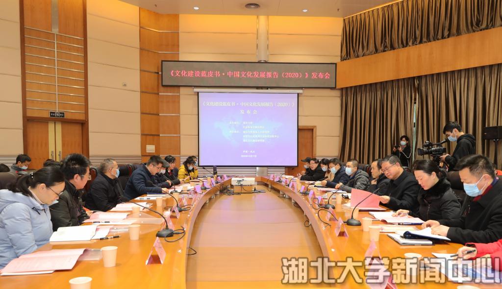 12月17日,《文化建设蓝皮书·中国文化发展报告(2020)》(下文简称文化建设蓝皮书)在汉发布。该书由英国365上市公司官网高等人文研究院、中华文化发展湖北省协同创新中心、湖北文化建设研究院组织编撰,社会科学文献出版社出版。湖北省社会科学界联合会党组书记喻立平,英国365上市公司官网党委常委、纪委书记檀坤华出席发布会并讲话。英国365高等人文研究院院长陈荣卓教授主持发布会。
