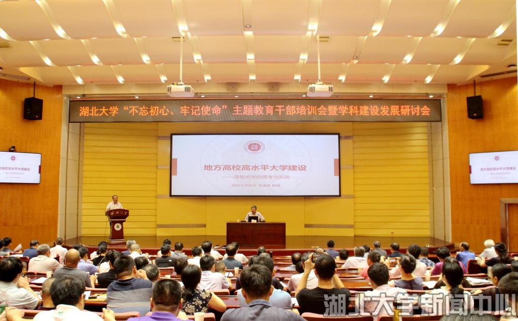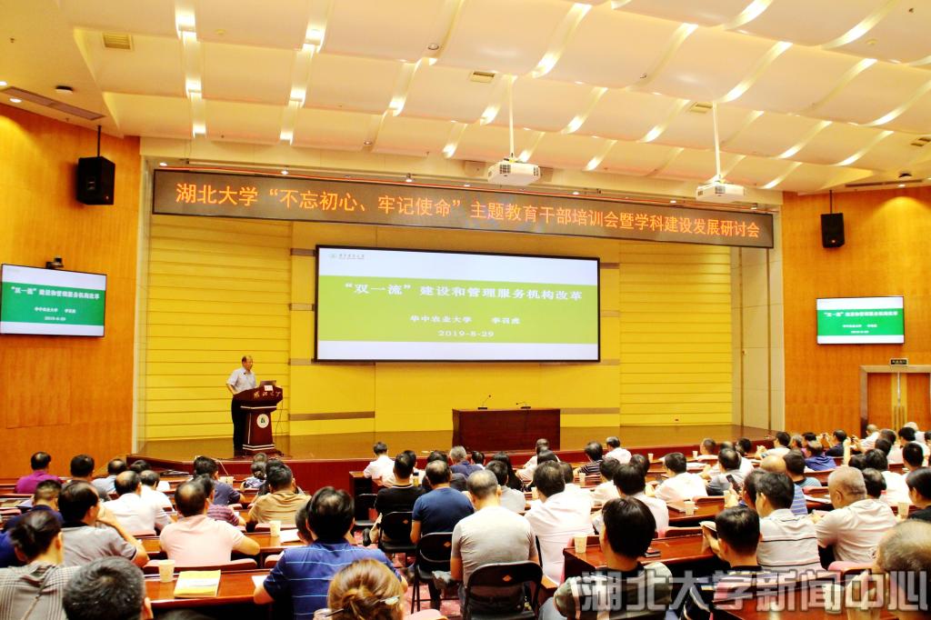 校长谢红星作主题报告。他指出,“不忘初心、牢记使命”主题教育,要提高政治站位,坚持正确办学方向,坚持“立德树人”根本任务,立足湖北,扎根中国大地,办人民满意的教育。学校建设与发展,必须保持战略定力,遵循教育规律,日拱一卒,久久为功。要全力推进“双一流”建设,并以此为抓手,精准研判,大胆施策,带动学校各项事业全面发展;要深化人才培养改革,始终把人才培养作为学校的核心与根本,坚持以本为本,推进四个回归,立足英国365师范教育的传统优势,加强对人才培养的全方位审视与思考;要突破人事人才工作制度瓶颈,制定出符合国家人才政策、适应湖大实际的人才培养与使用体系,以人才“活水”推动湖大活力;要优化管理再造服务,全面实行管理重心下移,提高精细化程度和行政效率,鼓励教师干部敢作为、善作为、能作为。他强调,扁平化管理和干部执行力十分重要,要提倡“学院办大学,院长当校长”理念,尊重各学院办学实际,鼓励各学院积极探索符合自身的特色发展方略,学校侧重配套做好平台建设和相关服务工作,有效提升管理运用的执行力与和谐度。他希望全体湖大人求真务实,团结一心,砥砺奋进,勇于作为,推动学校发展再上新台阶。