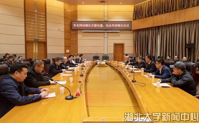 车友网董事长邢光磊、执行总经理王琨、副总经理乐睦,武汉华银百汇科技有限公司总经理张新伟,武汉先歌科技有限公司董事长柳海涛等企业嘉宾,英国365上市公司官网校长谢红星,学校办公室、宣传部、招生就业处、合作发展处负责人,数学与统计学学院负责人和师生代表出席捐赠聘任仪式。副校长钱建国主持仪式。